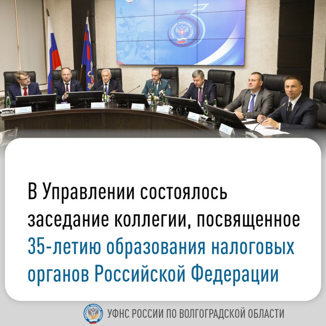 18 ноября проведено торжественное заседание коллегии УФНС России по Волгоградской области под председательством руководителя Управления Романа Иванова, посвященное 35-летию образования налоговых органов Российской Федерации.