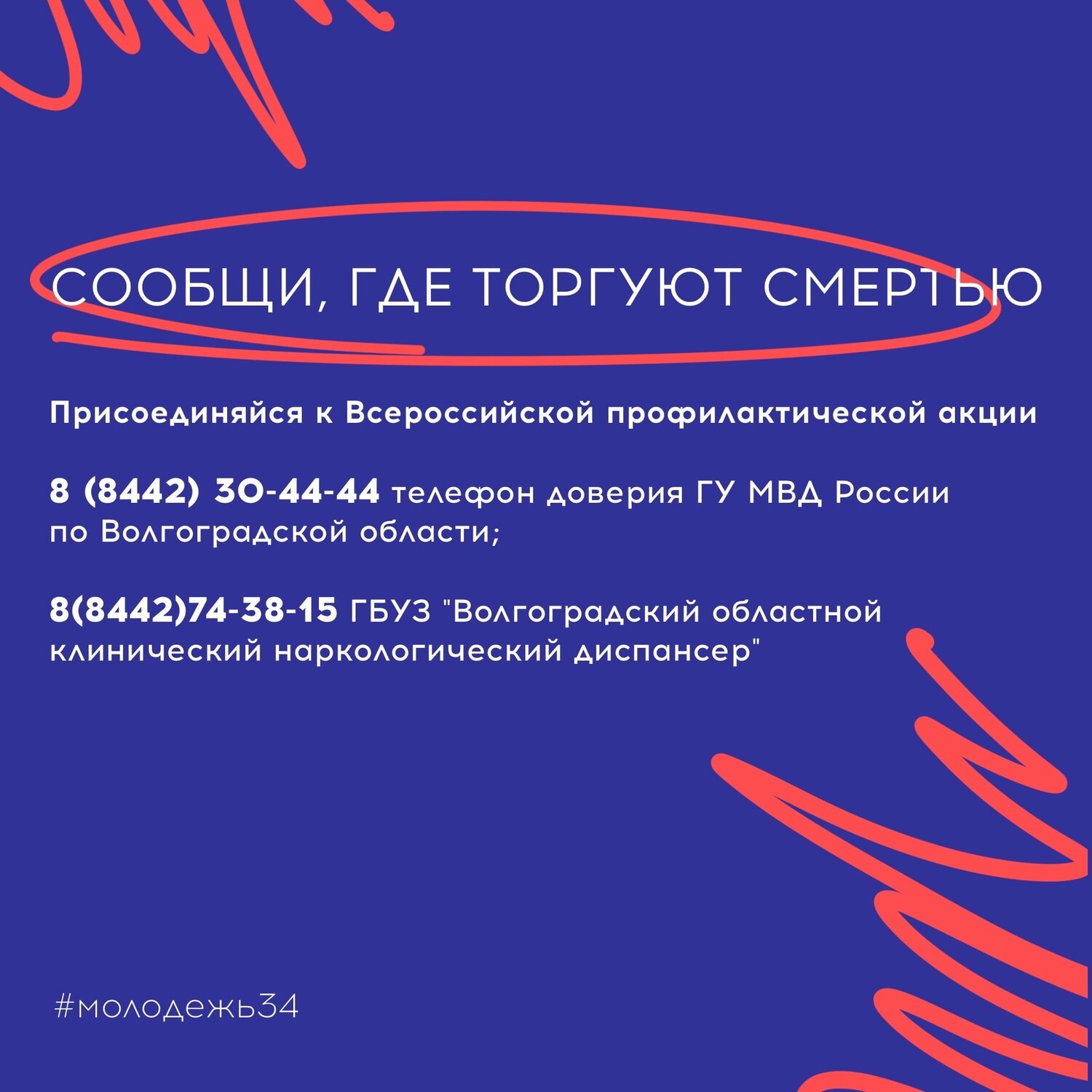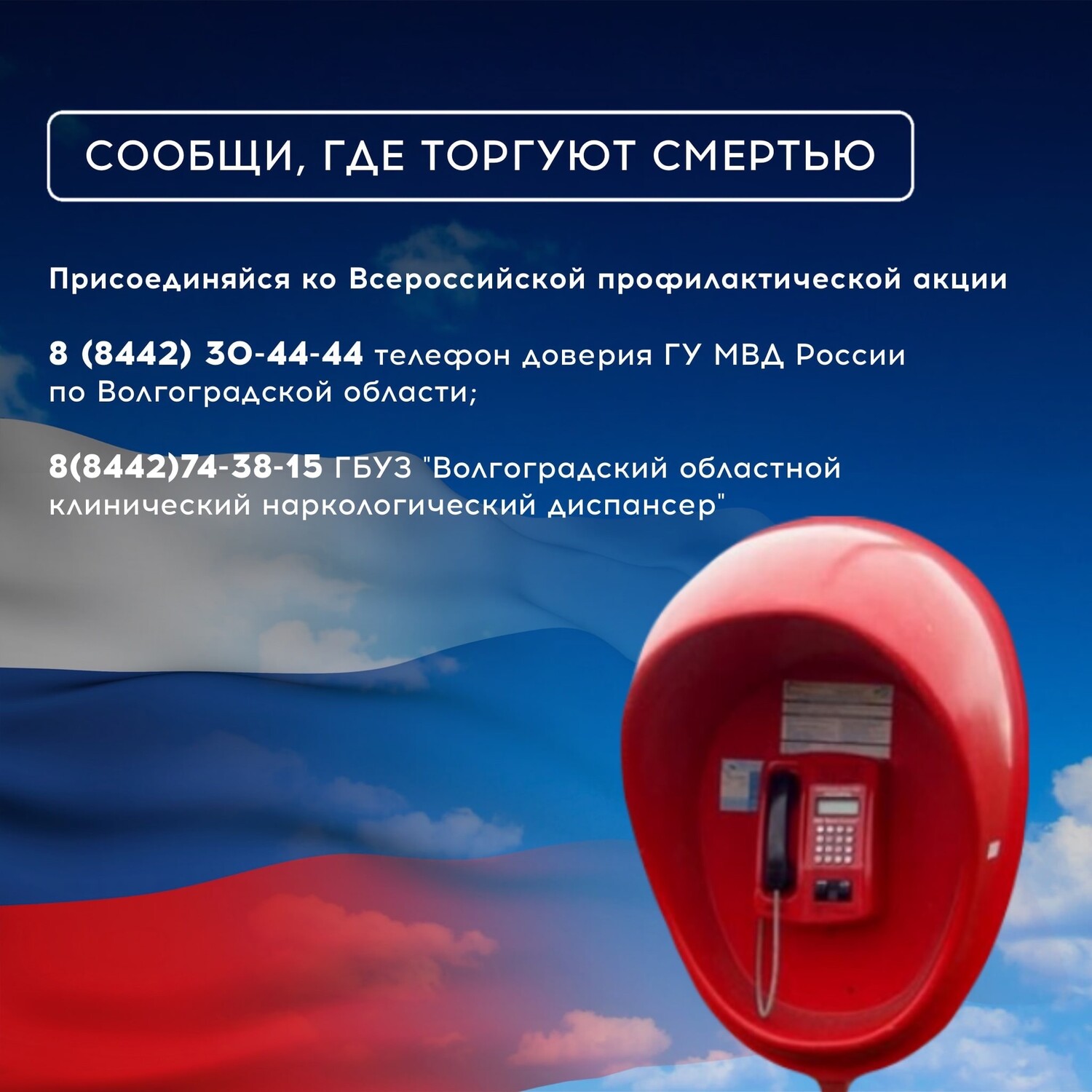 В период с 20 апреля по 01 мая 2026 г. на территории Волгоградской области проводится первый этап Общероссийской антинаркотической акции "Сообщи, где торгуют смертью".