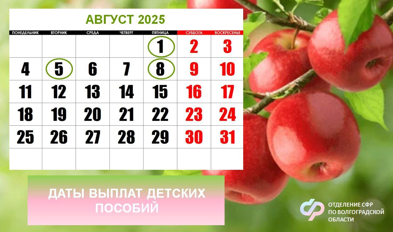 Выплатной период в августе начнётся раньше обычного – с 1-го числа месяца, так как 3 августа – стандартный день выплаты в нашем регионе – приходится на воскресенье. 1 августа на банковские счета волгоградцев региональное Отделение СФР перечислит: